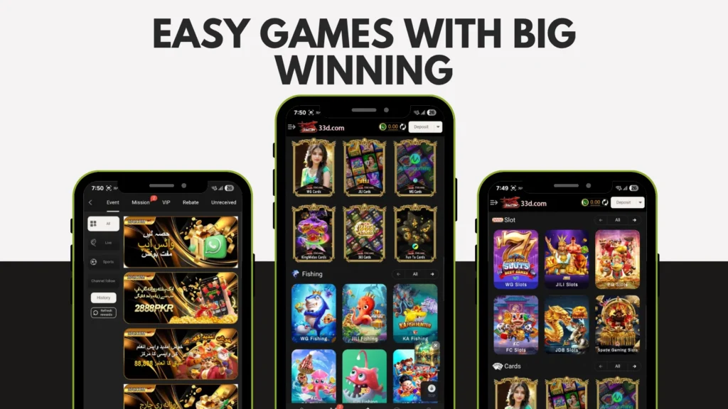 33D Game is a mobile-optimized online gaming platform that hosts a wide range of casino-style games and betting challenges. It’s designed primarily for players in Pakistan and offers opportunities to win real money while playing popular games such as slots cards live poker roulette and a variety of other virtual gaming experiences.