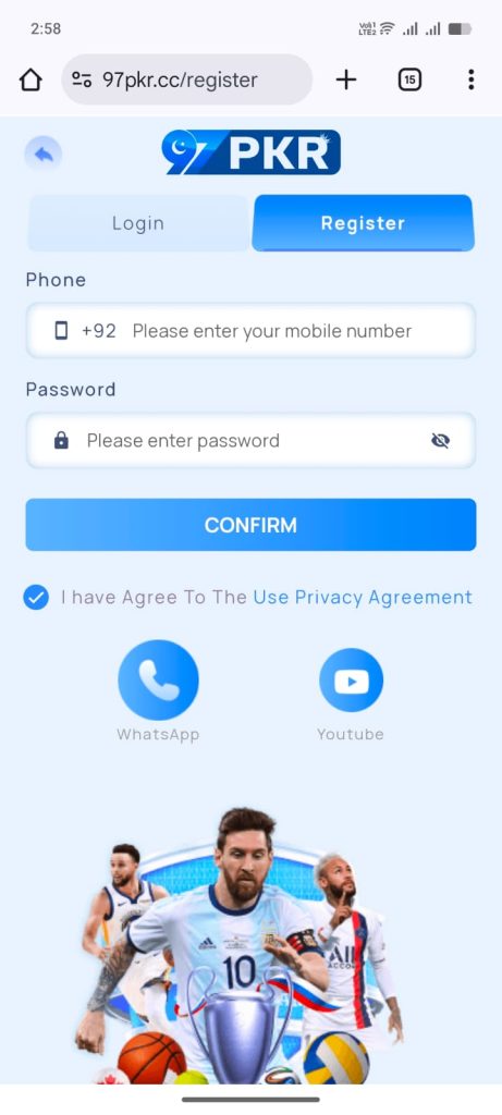 To register on 97pkr: