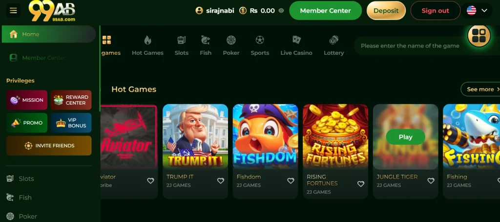 99AB Casino offers a huge collection of games including Baccarat Blackjack Dragon Tiger Roulette Sic Bo and thousands of slot games. There are separate sections for hot games new games jackpots and favorites.