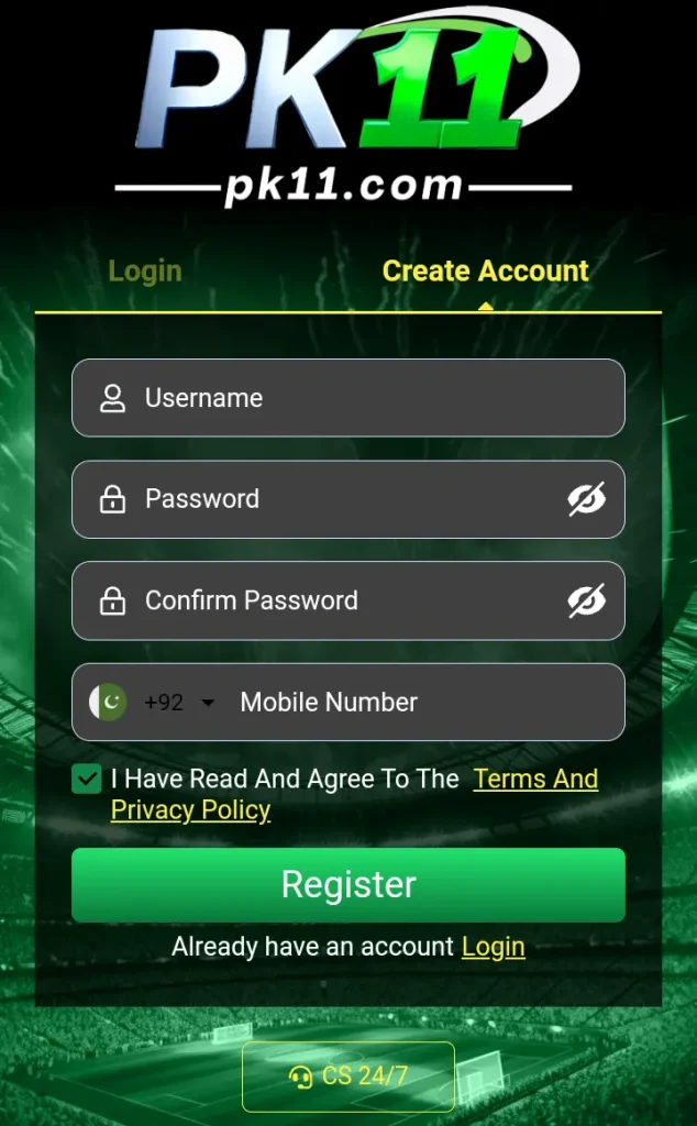 Creating an account on PK11 Game is quick and easy. Users can sign up using their mobile number or email address. After setting a secure password, a verification code is sent for confirmation. Once verified, players can log in and access all features of the app.
