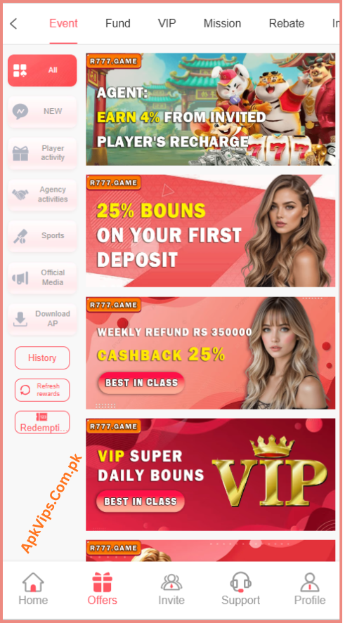 R777 Game gives you extra chances to earn. You can invite your friends to join the app. When they register using your link you get a referral bonus in PKR. If you become an agent you earn a daily commission from your team’s game activity.